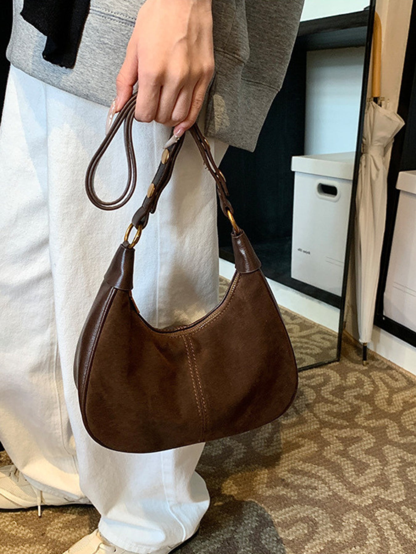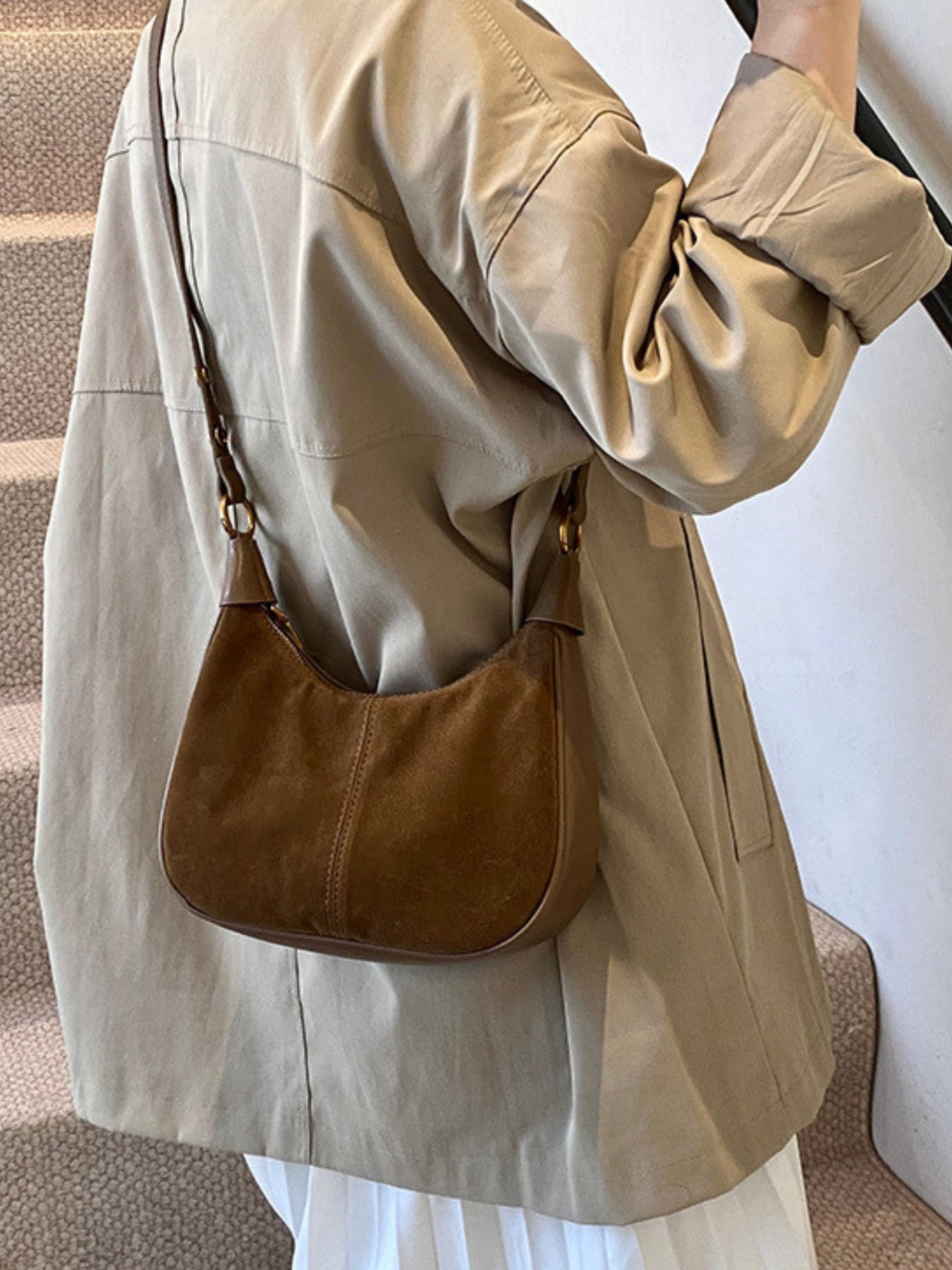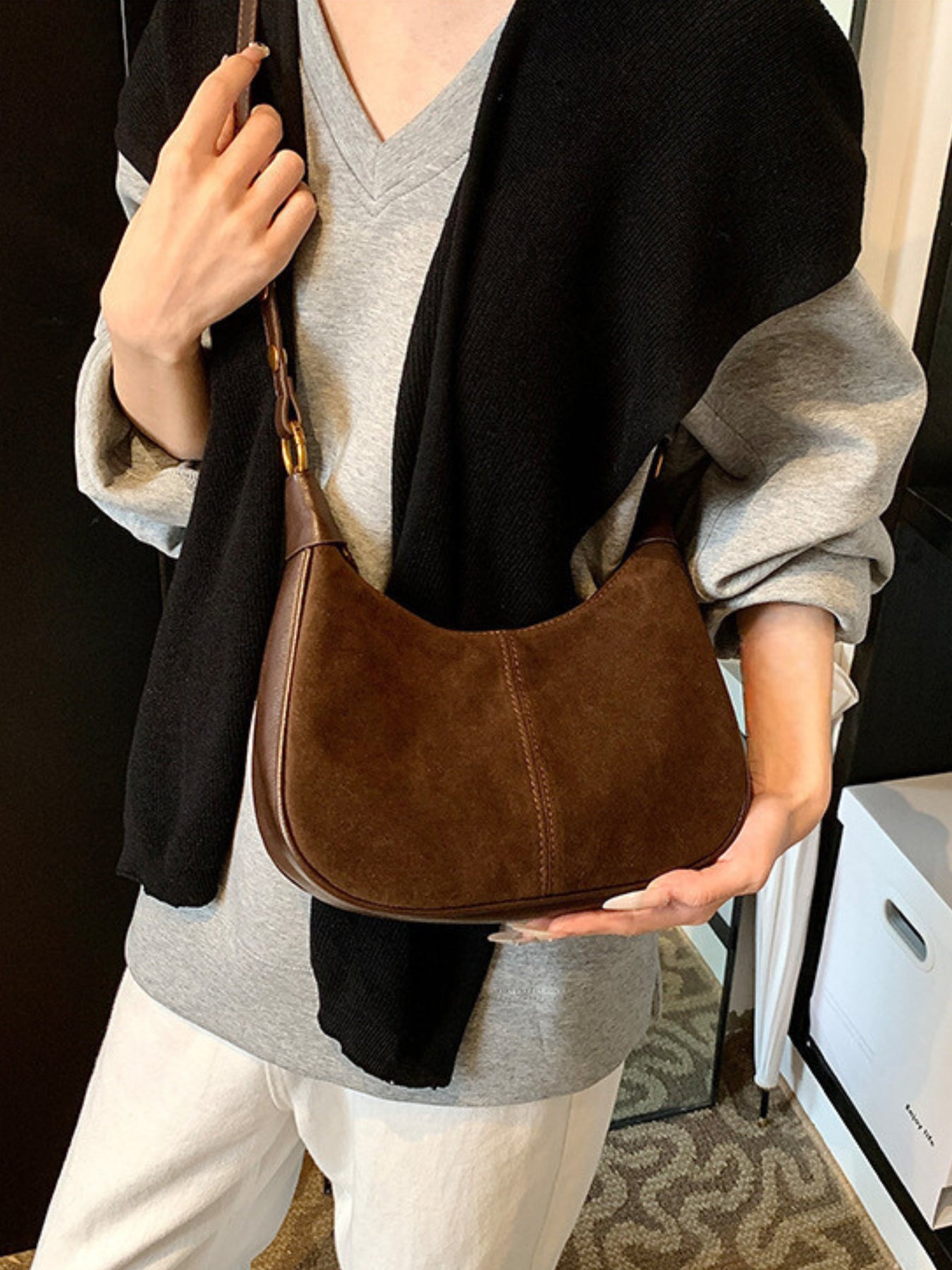 Torba Élodie Zamszowa ma zakrzywiony kształt, przestronne wnętrze i zamszowe wykończenia z jednej strony. Jej stylowy, praktyczny design sprawia, że idealnie pasuje do każdej stylizacji.